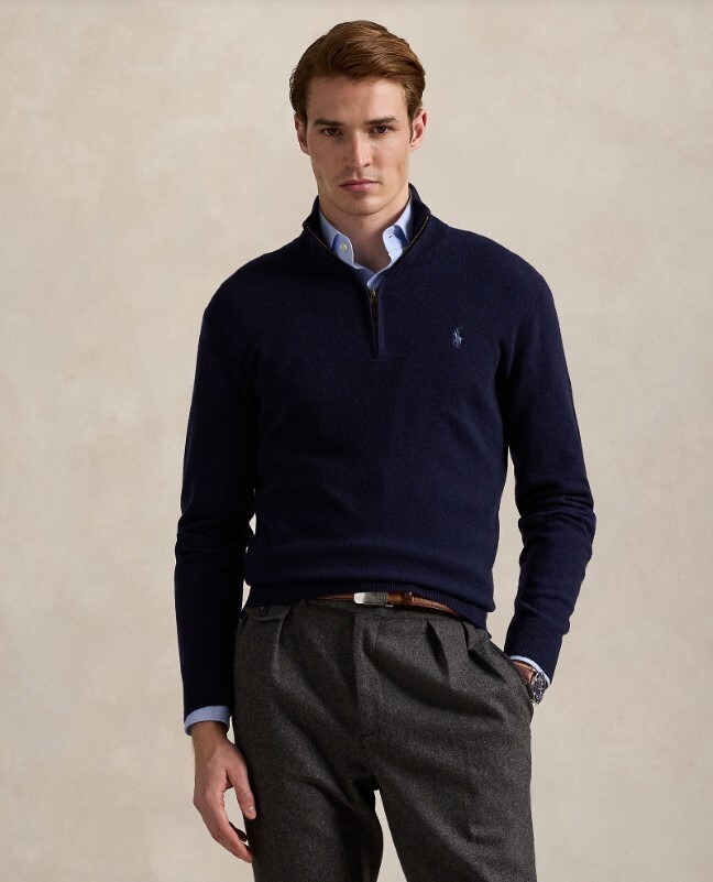Luxe Italiaanse wol en onze kenmerkende geborduurde Pony tillen deze trui met kwartrits naar een hoger niveau.