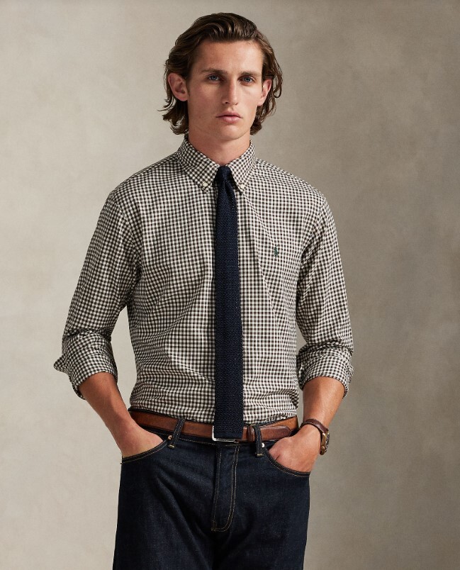Til je garderobe naar een hoger niveau met dit Custom Fit overhemd, waar perzikkleurige katoenen keperstof samengaat met onze op erfgoed geïnspireerde details. Het tijdloze geruite patroon, versterkt door onze kenmerkende geborduurde Pony, zorgt voor een authentieke Polo-stijl.